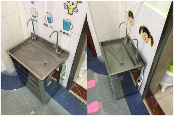 八年后,2020年新冠疫情的爆發讓園方高度警惕,小朋友們的身體健康馬虎不得,防疫期間小朋友們的飲水安全更是重中之重。由于園內的艾龍設備使用年限較久,園方擔心設備老化會影響出水水質,并且裝配的過濾系統與現在市面上的最新過濾系統相比之下過濾性能也有不足,為了筑牢疫情防控安全屏障,嚴格保障師生飲水安全,清遠市實驗幼兒園決定更新園內的公共飲水設備,采購一批新的飲水設備替換園內的老舊設備。