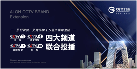 最美人間四月天,在這繁花似錦、春暖人間的美好日子里,艾龍品牌廣告正式亮相中央電視臺CCTV-1、CCTV-4、CCTV-7、CCTV-10四大頻道。“好水機,選艾龍!”伴隨著四月清風,通過央視這個權威平臺,艾龍品牌聲音震撼直達萬千觀眾,隆重向大家展現艾龍匠心制造的商用凈飲水設備的魅力!