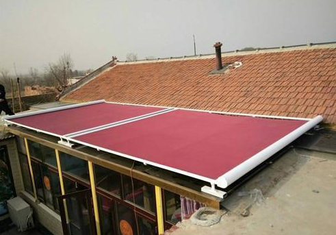 1、頂部裝遮陽簾。這是最常見的隔熱設計,主要是在陽光房的頂部安裝一個天篷簾,這是一個外部遮陽篷,隔熱是有效的,遮陽簾需要根據陽光房的位置來選擇,有電動和手動兩種類型,但整體隔熱效果有限。