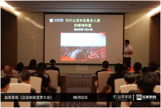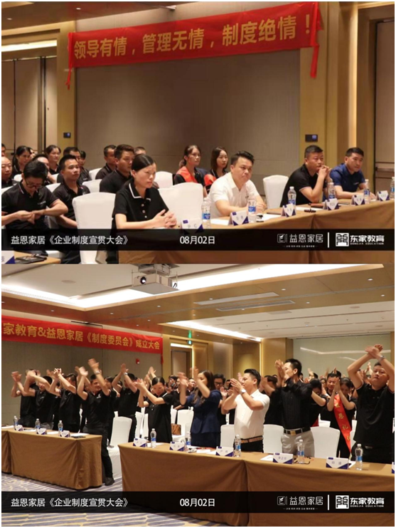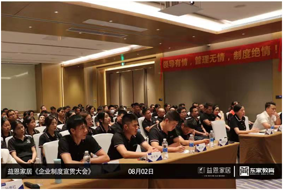 為進(jìn)一步提高企業(yè)規(guī)范化管理水平,提升管理效率,8月2日,益恩家居聯(lián)合東家教育共同舉辦了的益恩家居《企業(yè)制度宣貫大會》,全體益恩家人們出席了本次會議。