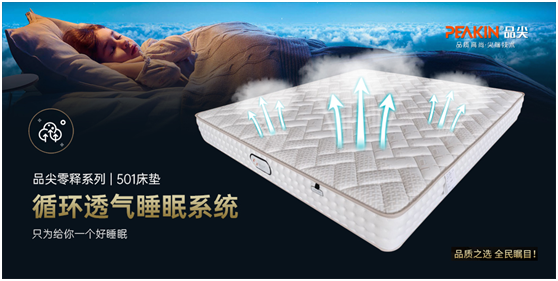 品尖零釋系列501床墊,從材料選用到內(nèi)部結(jié)構(gòu)設(shè)計(jì),全方位保障您的睡眠質(zhì)量,讓您遠(yuǎn)離細(xì)菌、螨蟲、粘膩、腰酸背痛的煩惱,為您創(chuàng)造美夢(mèng)的溫柔鄉(xiāng)。