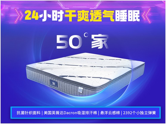 為此,湖南37年睡眠專家星港家居最新推出的50°家床墊,不僅增強(qiáng)了床墊的干爽透氣性,還能夠吸濕散熱,讓睡眠環(huán)境濕度長時(shí)間保持在適合人體體感舒適的層次。