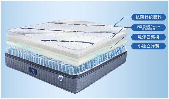 為了讓睡眠更加舒適,50°家床墊還采用了懸浮云感棉材料和抗菌防螨針織面料。其內(nèi)部形成了一個自由循環(huán)的微氣候環(huán)境,具有極強(qiáng)的透氣性能,能有效去除潮濕。表面親膚柔軟,具有抗菌性能,從內(nèi)到外打造出一個健康的睡眠環(huán)境。