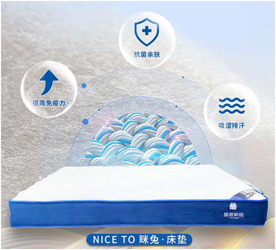 為解決熬夜對人體所帶來的影響,高效利用深度睡眠的時間,Nice to瞇兔床墊中添加了特殊的深海貝殼類萃取物蠔夢維材料,能夠提高人體免疫力。