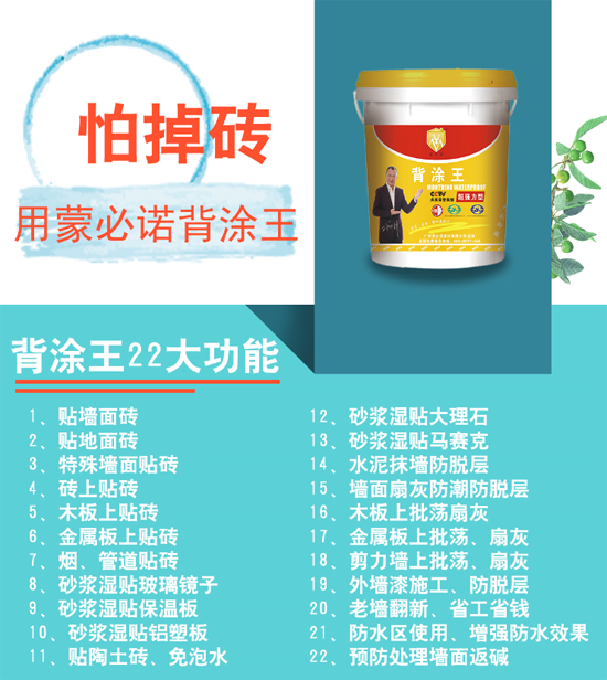 既然瓷磚背膠產(chǎn)品好,那么大伙兒也還是必須注意,現(xiàn)階段瓷磚背膠行業(yè)良莠不齊,不少小品牌混淆概念,大多數(shù)普通創(chuàng)業(yè)者不清楚區(qū)分真正的瓷磚背膠!這里,筆者必須指出,想代理瓷磚背膠,可以挑選蒙必諾瓷磚背膠這一個品牌!