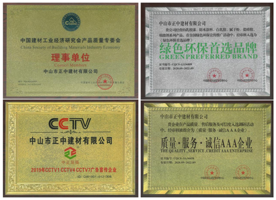 中正筑強品牌,隸屬于中山市正中建材有限公司。公司是一家集研發、生產、銷售為一體的現代化高新技術企業,公司占地面積 7千多平方米,年生產力高達72000噸。成立以來,正中建材公司榮獲“綠色環保首選品牌”、“建材質量推薦產品”、“質量·服務·誠信AAA企業”等榮譽稱號。