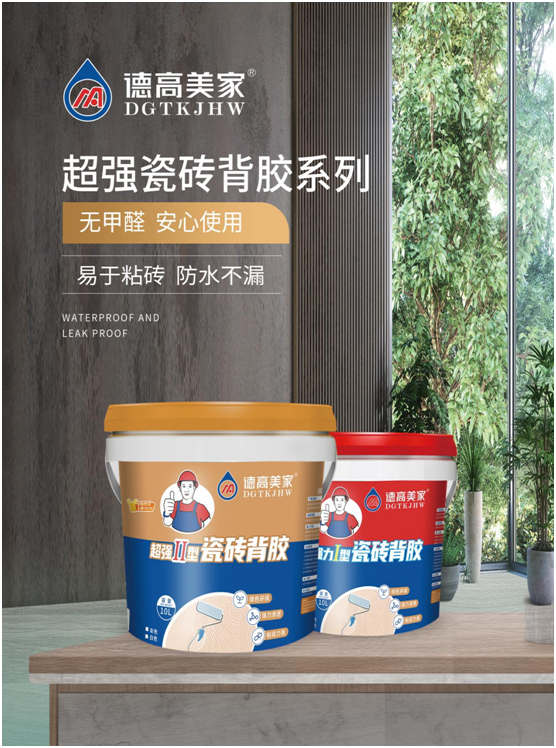 旗下產品德高美家超強瓷磚背膠系列,被譽為“瓷磚空鼓脫落的克星”。系列產品分為兩大產品——“強力Ⅰ型瓷磚背膠”和“超強Ⅱ型瓷磚背膠”,具有超強的粘接性、抗酸堿、防滲水的能力,抗老化性,可在瓷磚與瓷磚粘結材料之間架起一道牢固的“橋架”,沒有硬力破壞,不會脫落。