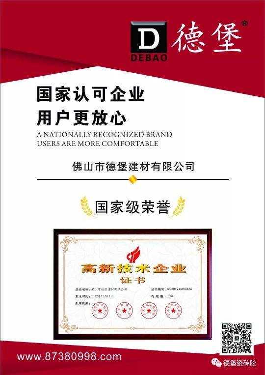 “德堡”品牌成立于2005年,至今已有10多年的歷史,產(chǎn)品銷往國內(nèi)外多個城市。佛山市德堡建材有限公司是一家集產(chǎn)品研發(fā)、生產(chǎn)、銷售、服務為一體的裝修輔材企業(yè)。專業(yè)生產(chǎn)填縫劑、瓷磚膠、粘貼填縫二合一、防水漿料、玻馬膠、石材膠、美瓷膠、膩子粉、抹灰砂漿、界面劑、瓷磚粘結(jié)劑、墻體加固劑等新型環(huán)保建筑材料。為客戶提供裝修高品質(zhì)輔材與服務的一站式采購平臺,保障提供客戶一個安全牢靠的家居環(huán)境。