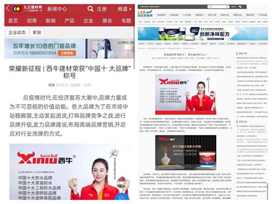2022年上半年,西牛建材加大力度進行品牌宣傳,先后與國內(nèi)多家知名網(wǎng)站達成戰(zhàn)略合作伙伴關系。在行業(yè)下一個財富風口處,借助社會媒介的影響力,全面助力品牌騰飛。