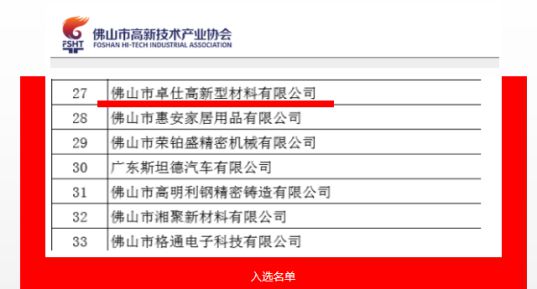 佛山卓仕高新型材料有限公司—億固生產(chǎn)基地,榮獲佛山2022“專精特新”企業(yè)榮譽(yù)稱號(hào)!