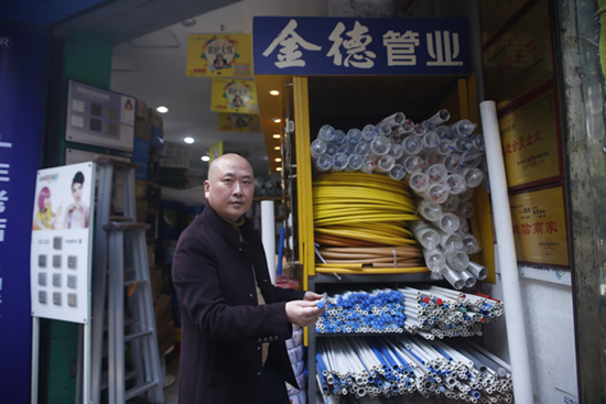 楊見勇:從經(jīng)營金德管業(yè)產(chǎn)品以來,店鋪的銷售量穩(wěn)步提升。其中,2011年到2014年,店鋪的銷售量連續(xù)三年在市區(qū)名列前茅,樹立了重慶市的標(biāo)桿。2013年。企業(yè)領(lǐng)導(dǎo)到來江津考察,我出席了經(jīng)銷商大會,接著又到重慶出席集團(tuán)表彰會,這都是店鋪銷售量帶給我的榮譽(yù)。但最近幾年銷售量有一定的下滑,關(guān)鍵原因是受房地產(chǎn)影響,建材市場不好做,競爭壓力越來越大。