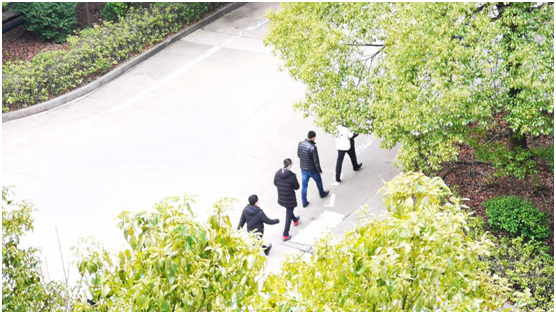 為確保用餐安全,金德園區內嚴格執行“相距一米,排成一列,分時分批用餐。”偶然間遇到一列井然有序的縱隊經過,讓人仿佛有種在部隊的錯覺。這一幕,讓我們感動,也讓我們堅信,在每一位人民的共同努力下,疫情終會被擊退,我們終將迎來生機勃勃的春天。