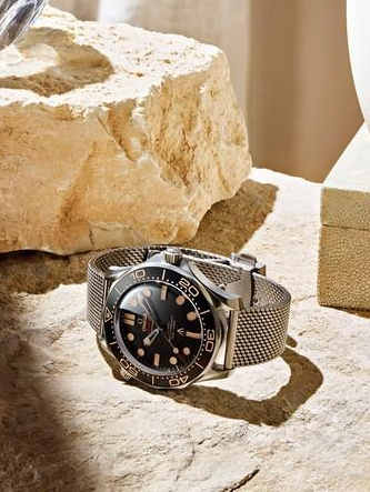 丹尼爾克雷格認為一只特務表必須要輕盈,他也建議要加入復古元素與色澤,于是歐米茄為海馬潛水300米系列同軸擒縱42毫米大師天文臺007版腕表,進行「瘦身」,運用2級鈦金屬打造表殼、網紋表煉,表圈則為鋁合金材質,并點綴復古味道的熱帶(tropical)」棕色,實踐丹尼爾克雷格對特務表的夢想模樣。