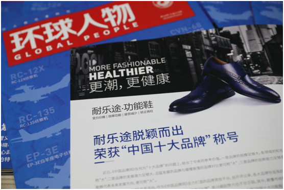 以人物記錄時代,突出全球視野。中國權威雜志——《環球人物》用標榜品牌力量的版面,刊登了“中國十大功能鞋品牌”——耐樂途,以及它的創始人李巖先生。
