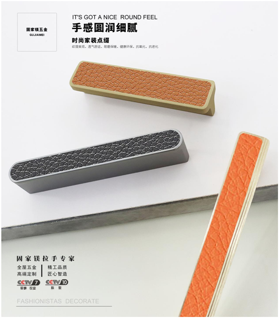 皮革是西方貴族的象征,皮革獨有的高貴與優(yōu)雅一直被人們所喜愛,不僅是皮革的氣質(zhì),還有皮革的質(zhì)感和手感。將皮革的魅力運用到拉手里,成為五金拉手的一重大學(xué)問。固家鎂五金拉手選用優(yōu)質(zhì)皮革——“會呼吸的皮質(zhì)”,最大程度保留真皮的天然毛孔。這種材質(zhì)