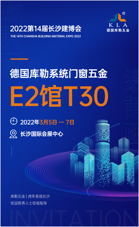 長沙建博會(huì)即將隆重開幕,庫勒五金蓄勢待發(fā)。2022年3月5-7日,庫勒五金在E2館T30展位歡迎廣大新老顧客、商業(yè)同仁前來參觀洽談。