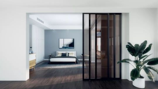 上面有介紹到這款FG-80 3T,既可適用于木質門扇,又可以適用于鋁框門扇。各種裝修風格搭配都不在話下。想要光線更好,就可以選擇這款鋁框玻璃門應用。