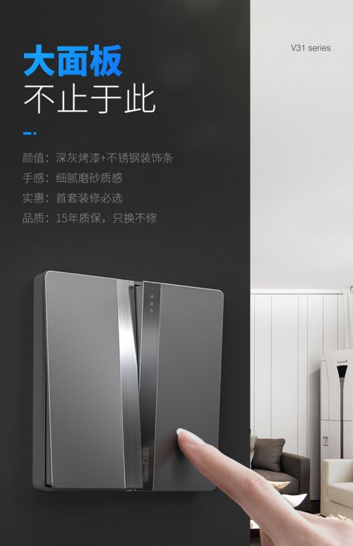 深灰色屬于中性色,也是百搭色。加上高顏值,有質(zhì)感,功能強(qiáng)等優(yōu)勢(shì),V31系列適合安裝在別墅、賓館、會(huì)所、酒店、辦公樓等高檔場(chǎng)所。