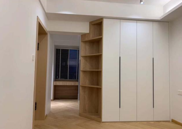 臥室做的是四開門的到頂的衣柜,整體的風格就是簡潔、溫馨。