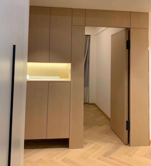 這個隱形門起到的和鞋柜收納柜一種延伸的作用,也是為了解決直沖的問題。