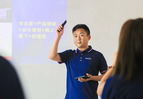 隨后,泰沃照明營銷總監胡宇濤為在場的經銷商介紹了公司的新品及營銷規劃。胡總監詳細闡述了新產品的設計思路、技術特性以及市場預期,也展示了泰沃照明在培訓上的創新與布局,旨在幫助經銷商更好地理解產品優勢,提升銷售效率。同時展示了未來在終端店面上的升級計劃與完善措施。