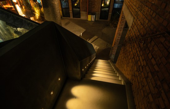 每層臺階安裝的GLEAM Footlight,獨特的橢圓形光斑強化了階梯橫向線條,塑造向上行走的延伸感,增加了空間節點的趣味性,形成連接夜晚的視覺通道,強化了從花園到二樓露臺的空間層次,為整個環境增加了韻味。