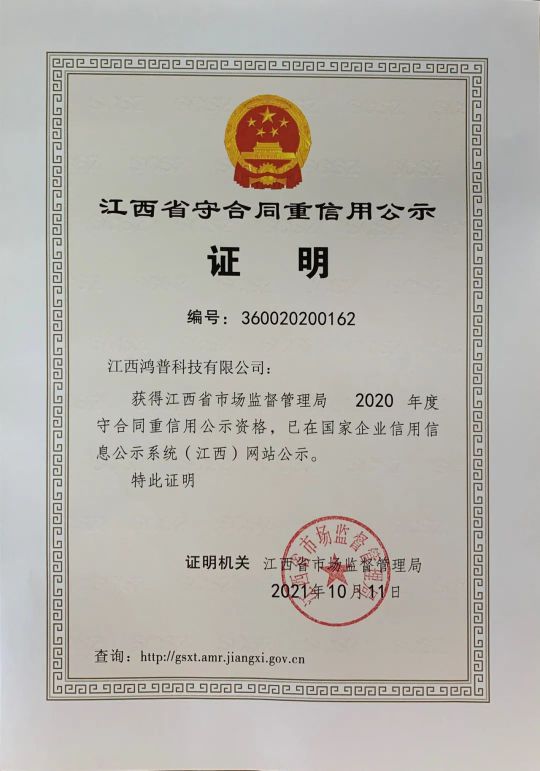 近日,江西省市場(chǎng)監(jiān)督管理局對(duì)2020年度江西省“守合同重信用”企業(yè)進(jìn)行公示,江西鴻普科技有限公司(下文稱“鴻普照明”)順利通過江西省市場(chǎng)監(jiān)督管理局的最終評(píng)審,獲評(píng)“江西省守合同重信用企業(yè)”榮譽(yù)稱號(hào),并獲頒榮譽(yù)證書。