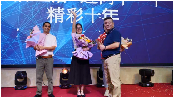 緊接著,簡潔衛(wèi)浴董事長譚總為在簡潔衛(wèi)浴工作10多年的工作人員頒發(fā)了紀念獎牌和豐厚的獎金,感謝他們用勤勞的雙手澆灌了簡潔衛(wèi)浴的成長,并向他們的敬業(yè)表示致敬。最后,現(xiàn)場來賓們在簡潔員工精心準備的節(jié)目中舉杯同慶,向過往十年不懈追光的簡潔致敬,為簡潔美好的未來干杯,將現(xiàn)場的氣氛推向了高潮。