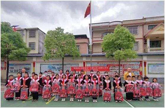 在疫情嚴峻的當下,愛心之旅跨越時空,通過郵政速遞,傳向偏遠的三水瑤族鄉地區。受疫情影響,未能親臨現場的萬企共晉和兔爸教育基金,委托學校領導把愛心書包捐贈給學校的孤兒、困難家庭兒童、困境兒童及留守兒童,孩子們手捧“愛心書包”滿心歡喜。