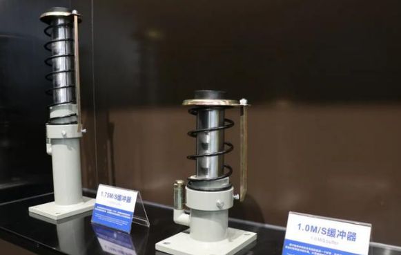 當(dāng)電梯出現(xiàn)極端情況而超越極限開(kāi)關(guān)即將沖頂或蹲底時(shí),會(huì)撞擊并壓縮緩沖器使電梯減速停止,就像汽車的安全氣囊,避免電梯轎廂或?qū)χ刂苯記_頂或蹲底。