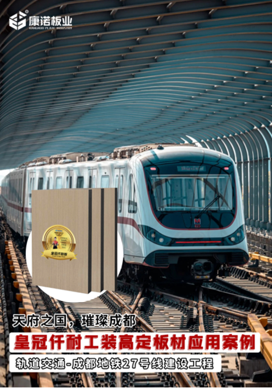 近期,康諾板業憑借其在工裝高定板材領域的深厚積累,成功參與到了成都地鐵27號線的建設中,為這一城市交通重點項目的順利推進貢獻了自己的力量。