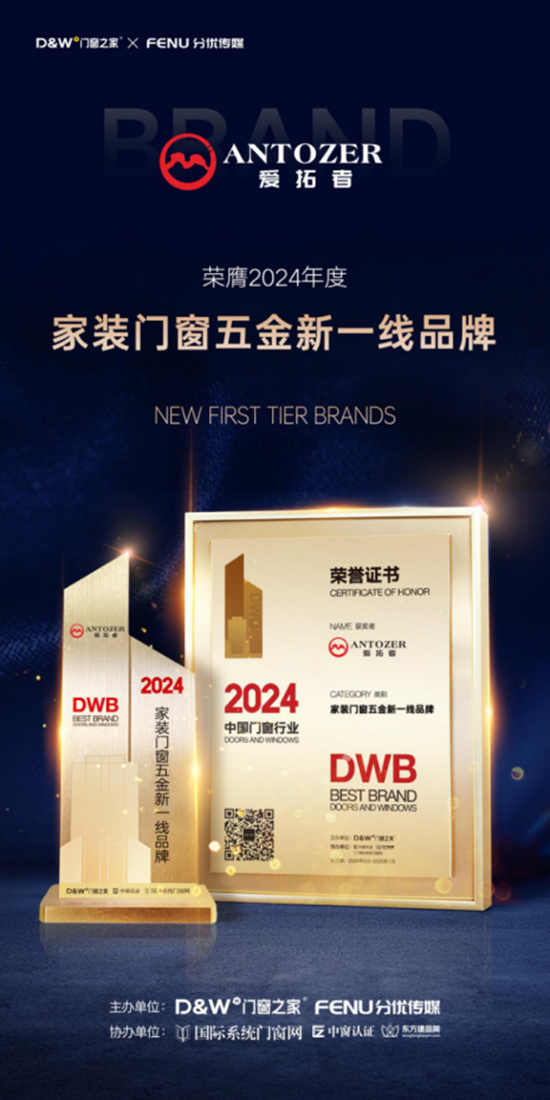 在本次頒獎活動中,來自北歐丹麥的愛拓者高端五金品牌,憑借著雄厚的品牌影響力和優(yōu)秀的市場口碑嶄露鋒芒,在眾多門窗五金知名品牌的角逐中脫穎而出,一舉斬獲“2024年度中國家裝門窗五金新一線品牌”。這份獎項的獲得,不僅是對愛拓者過往成就的高度贊譽與肯定,更飽含著對愛拓者未來發(fā)展?jié)摿Φ囊笄衅谕c深厚寄望。
