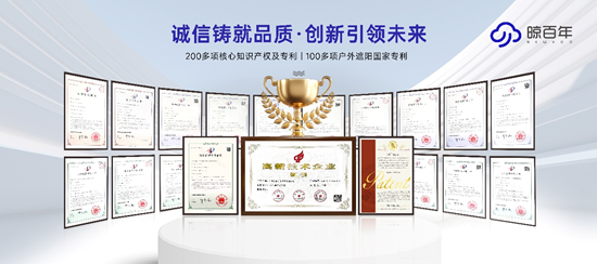 晾百年深知科技創新是企業發展的核心驅動力,在技術專利方面成績斐然。創始人邱永忠作為機電高級工程師,在遮陽行業深耕多年,不斷的沉淀下,企業擁有近 200 項專利。晾百年的防風卷簾擁有 100 多項戶外遮陽產品國家專利,像智慧平衡器、無螺釘卡扣式側柜系統等核心技術,不僅提升了產品性能,還獲得了美國專利技術認證。這些專利技術應用在產品中,使防風卷簾具備更平整的面料、更強的防風能力,保障拉鏈順滑運行,極大地提高了產品的實用性和耐用性 ,讓晾百年在技術層面領先于同行。
