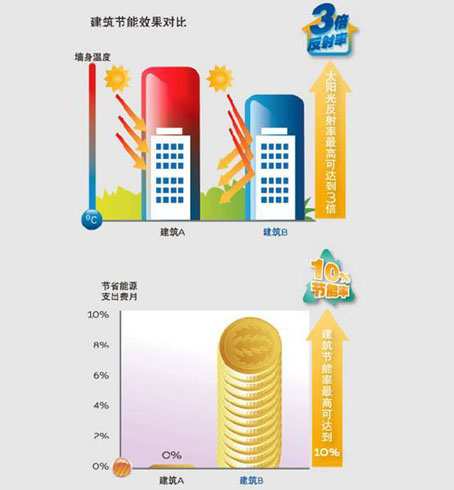 經(jīng)過(guò)權(quán)威官方測(cè)試機(jī)構(gòu)認(rèn)證,涂刷多樂士專業(yè)生態(tài)隔熱外墻漆系列的民居可實(shí)現(xiàn)最高達(dá)10%的建筑節(jié)能;與涂刷普通外墻漆相比,外墻溫差最高可達(dá)13℃。在炎熱的季節(jié),涂裝多樂士專業(yè)生態(tài)隔熱外墻漆系列的建筑能夠減少熱能向墻體內(nèi)部傳導(dǎo),可有效降低外墻表面及室內(nèi)溫度,輕松創(chuàng)造更加節(jié)能環(huán)保的綠色建筑。