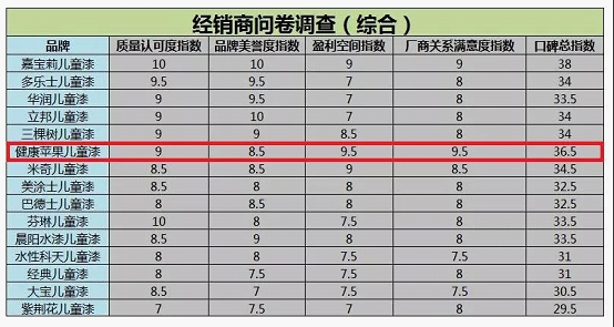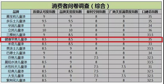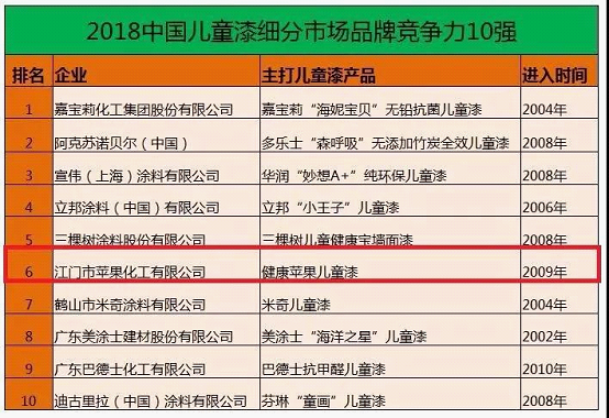 其中我司旗下的兒童漆產(chǎn)品“健康蘋(píng)果兒童漆”在眾多國(guó)內(nèi)外兒童漆品牌中脫穎而出,位列第六名。