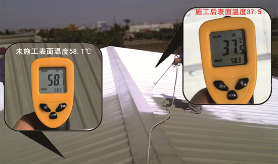 可應(yīng)用于在體積、重量上受到限制的場所,(經(jīng)認可)1mm厚的反射隔熱漆反射了所有熱輻射的約70%-90%,相當(dāng)于10mm厚的R值為20的聚苯乙烯泡沫塑料;