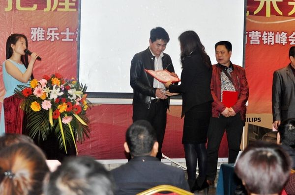 公司營銷一部總監(jiān)李海英為優(yōu)秀經(jīng)銷商頒獎(jiǎng)