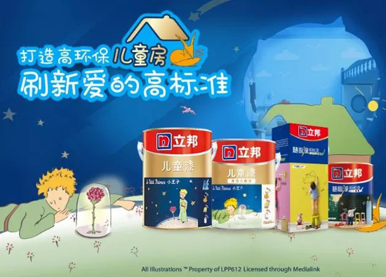作為涂料十大品牌,行業的領導者,立邦始終踐行綠色行動,以科技創新打造綠色兒童涂料產品。早在2015年,立邦就與世界知名的“小王子”合作開發高標準的小王子兒童涂料,該涂料結合了“甲醛凈化技術”。