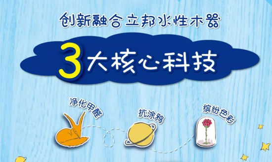 據了解,立邦兒童水性木器漆還創新整合了三項核心技術:有效凈化甲醛,滿足“室內空氣凈化功能涂料凈化性能”行業標準的要求,讓兒童享受清潔空氣,保護全家健康;防涂鴉效果顯著。通過《兒童房裝飾用水性木器涂料》國家標準,防涂鴉測試、墨水、水彩筆筆跡等各種生活污漬都可以輕松抹去,讓孩子們盡情玩樂,釋放他們的本性。提供豐富多彩的顏色來培養孩子的想象力和創造力。