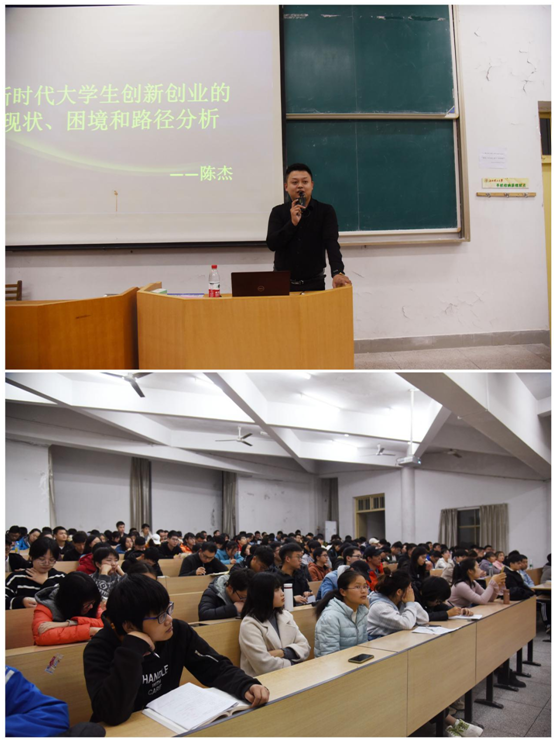 講座上,陳杰董事長向同學們介紹了“創新創業”的概念,并從國家需要、社會需要、個體需要三個方面說明了為什么要創新創業。陳董指出目前創新創業的現狀,并分享了對教育存在誤區、教育師資隊伍不完善、創新創業教育課程體系不健全等問題的看法。