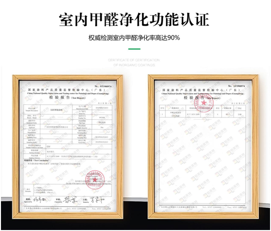 2019年,鉑英特所有產品均通過了國家涂料產品質量監督檢驗中心的相關檢測,其中公司的無機智能涂料的“室內空氣凈化功能涂覆材料凈化性能”檢測結果為“甲醛凈化性能效率”達到89.2%,