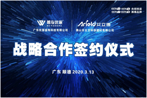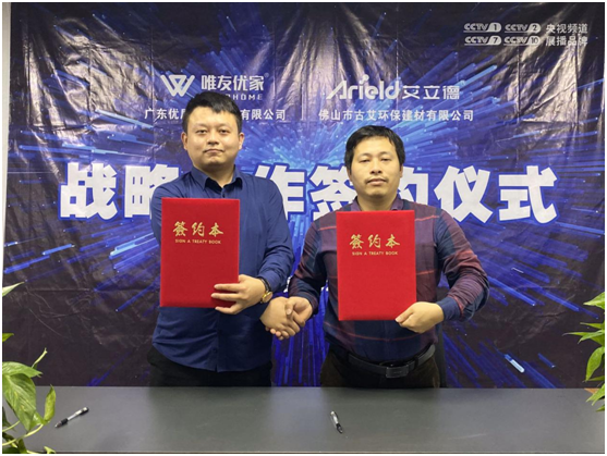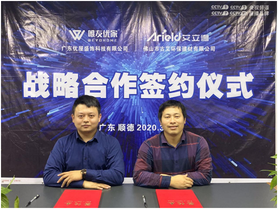 2020年3月13日,艾立德建材繼與著名裝飾集團公司三星裝飾達成戰略合作關系后,再接再厲,成功牽手影響粵港澳大灣區家居行業的大家居服務平臺——廣東優屋盛飾科技有限公司,為拓展多元化合作模式做全面布局!