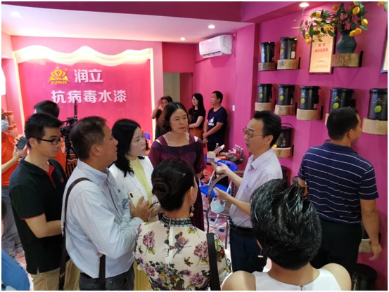 當日上午,潤立董事長何偉強先生、總經理唐瑤女士、廣東省涂料協會秘書長呂水列、廣東微生物研究所謝小保主任、廣東迪美生物技術有限公司專家以及多位媒體及客商陸續到場,共同見證了潤立漆的“高光”時刻。