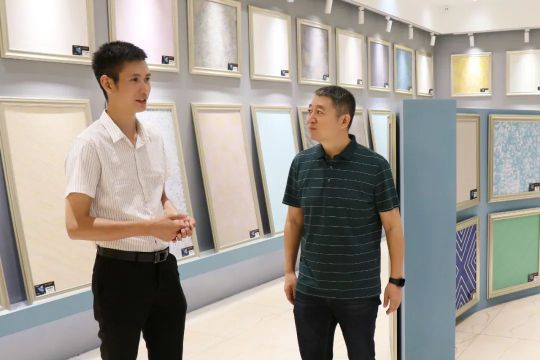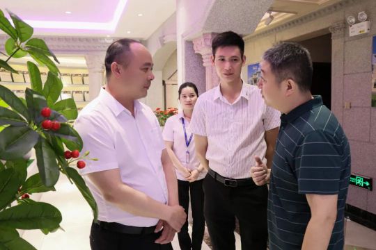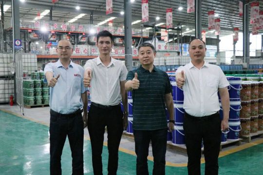 2022年6月17日,中國建筑裝飾裝修協(xié)會仿石涂料專家委員會秘書長李華平蒞臨廣西銀墻新材料科技有限公司參觀指導(dǎo)!董事長唐文海,總經(jīng)理王興,高級工程師李建華一行陪同交流!