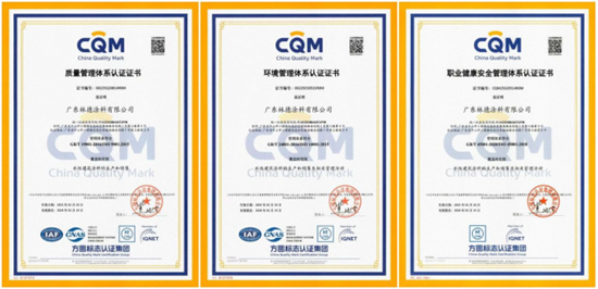 林德漆作為國家高新技術企業,一直以來都以“一流品質,一流服務”為不懈追求。此次榮獲“三體系認證”,正是林德漆長期堅持高品質發展戰略的成果體現。