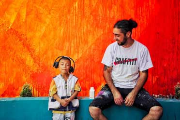 吉首是湘西土家族苗族自治州州府所在地,自然山水、濃郁的民族風情、厚重的歷史文化構成了當地獨特的人文景觀。由于吉首地處深山,交通閉塞,所以當地學校的資源配置不盡如意。 據悉,此次受邀創作的智利藝術家INTI在智利頗有名氣,他善于使用溫暖的橙色色調及包含拉丁嘉年華式的明亮色彩以及南美文化的代表元素。受「為愛上色」藝術+的邀請,INTI橫跨大半個地球,為孩子們帶來了一場獨具中式風格的魔幻色彩嘉年華。