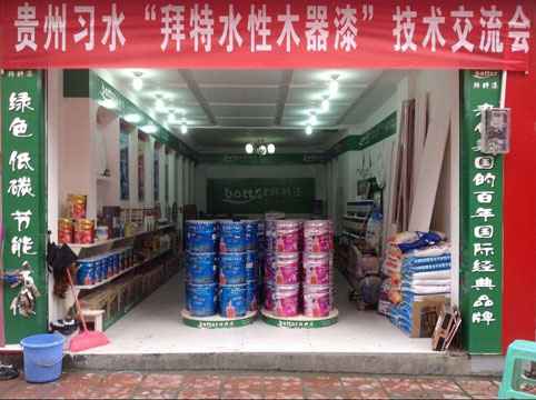 續9月3日拜特水性漆在貴州從江舉行的“拜特水性漆技術交流會”圓滿成功之后,9月5日拜特水性漆又在貴州習水傳來的喜訊:拜特水性漆習水旗艦店開業拉!!!