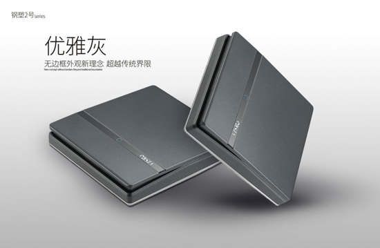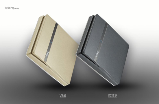 鋼塑2號優雅灰繼承了V9金的高品質性能,采用阻燃PC材料、超強中架、精鋼鍛造、擺荷式開關結構、一體式后蓋等鋼塑結合,從外形設計、內部結構進行了全面升級,給予了顧客更高檔、更有質感的開關體驗。