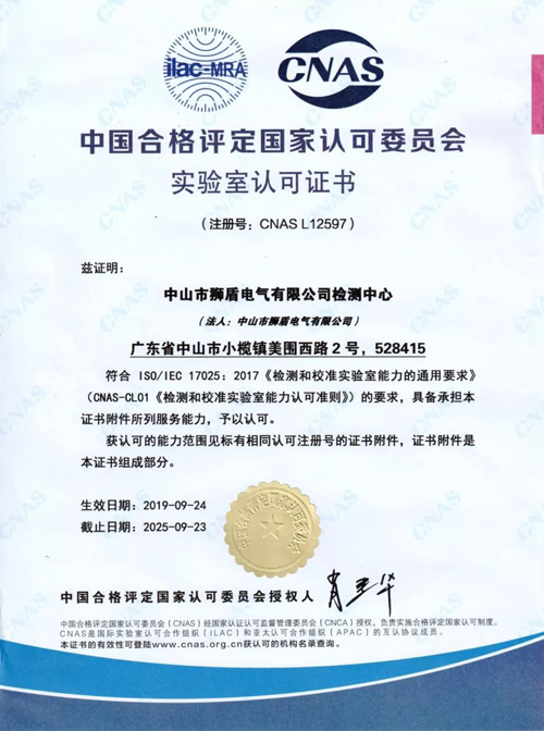 近期,中山市獅盾電氣有限公司檢測中心通過CNAS(中國合格評定國家認可委員會)實驗室現(xiàn)場評審和后續(xù)考察,成功獲得實驗室國家認可證書,一舉躋身國家認可實驗室行列,標志著公司實驗室具有了國家及國際認可的管理水平和檢測能力,具備了為本公司及合作單位提供更嚴密檢測的能力。同時,公司實驗室檢測能力獲得國際認可,有助于提升公司產(chǎn)品的公信力及品牌的影響力,提升公司產(chǎn)品在國內(nèi)外市場的占有率。據(jù)悉,獅盾是開關(guān)插座行業(yè)中為數(shù)不多獲得CNAS國家實驗室認證的企業(yè),充分體現(xiàn)了獅盾引領(lǐng)行業(yè)的研發(fā)實力。