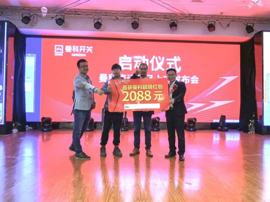 在此次發布會上,曼科開關新推出的“曼科超級紅包刮刮卡”福利回饋活動將會上氣氛推到了高潮,現場客戶們紛紛投入到刮卡領紅包,贏取幸運紅包大獎的熱烈氛圍之中,隨著紅包大獎幸運兒不斷出現,現場氣氛一度被推向高潮。